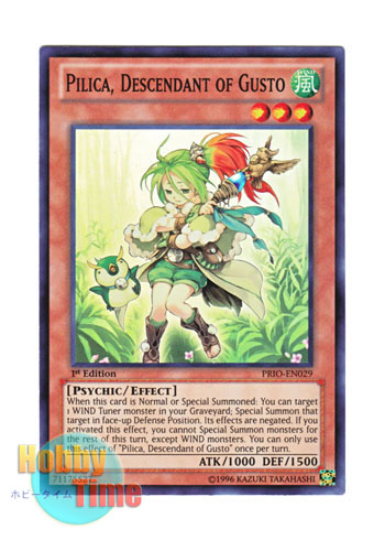 ホーム | 英語版 第8期 > PRIO プライマル・オリジン英語版 PRIO-EN029 Pilica, Descendant of Gusto ガスタの神裔 ピリカ (スーパーレア) 1st Edition