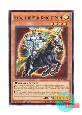 ホーム | 英語版 第9期 > DUEA デュエリスト・アライアンス英語版 DUEA-EN091 Gaia, the Mid-Knight Sun 白夜の騎士ガイア (ノーマル) 1st Edition