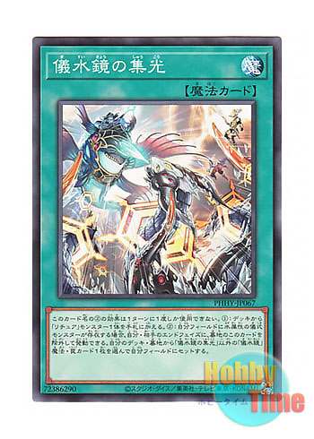 自分のデッキ・墓地から「儀水鏡の集光」以外の「儀水鏡」魔法・罠カード1枚を選んで自分フィールドにセットする。